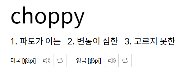 마찬가지로 Choppy의 1번 뜻도 이렇게 이해하시면 될 것 같아요.