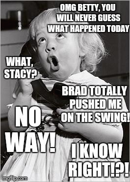 Stacy : OMG, Betty, You'll NEVER guess what happened today.