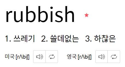 Rubbish는 Trash와 Garbage를 모두 포함하고 있는 쓰레기를 가리킵니다.
